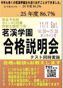 11/1(土)14:30~茗渓合格説明会を開催いたします。